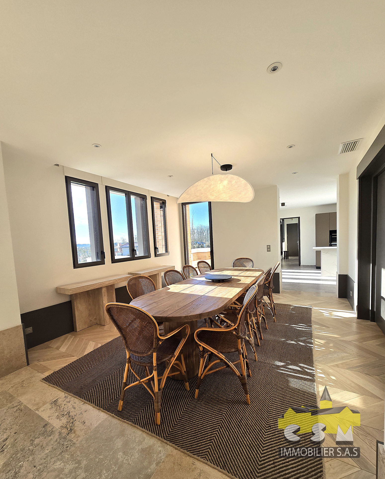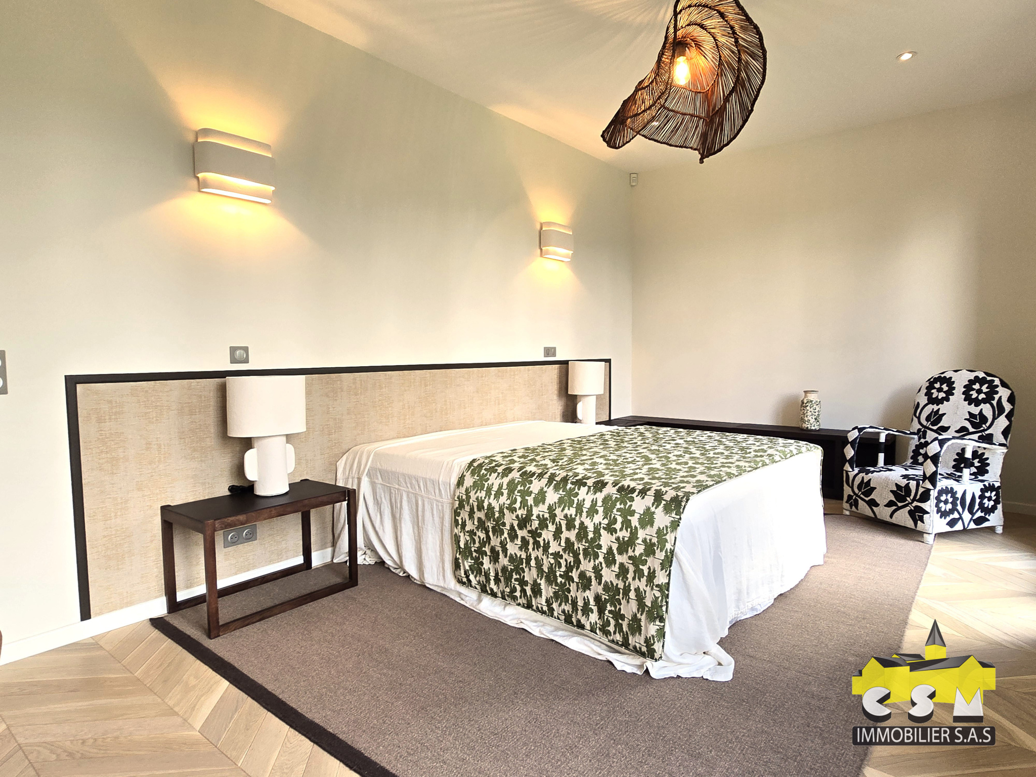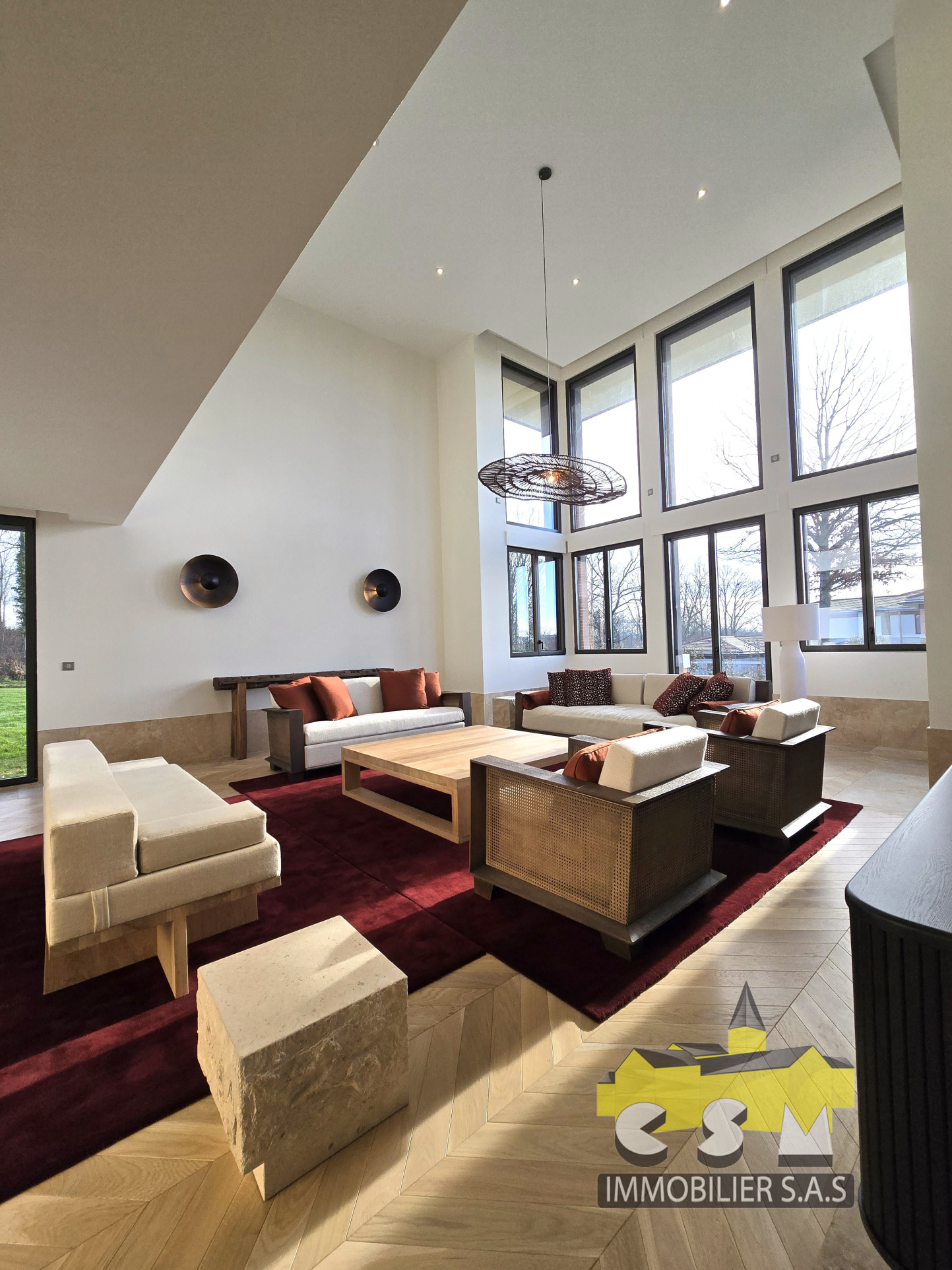 On commence la visite par une belle et grande entrée qui donne sur une salle à manger ainsi qu’un magnifique séjour cathédral avec une vue dégagée. On poursuit avec la media room d’environ 19.69m2, pour vos soirées cinéma en famille. Une chambre master de 40m2 avec salle d’eau et dressing privatif. Cellier – buanderie – pour une maison fonctionnelle !
